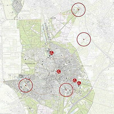 Dit voldoet aan de motie van de gemeenteraad van Hilversum ‘Park & Bike als aanvulling op de Mobiliteitsvisie’. Het betreft een viertal zoekgebieden die zijn weergegeven op de kaart hiernaast.